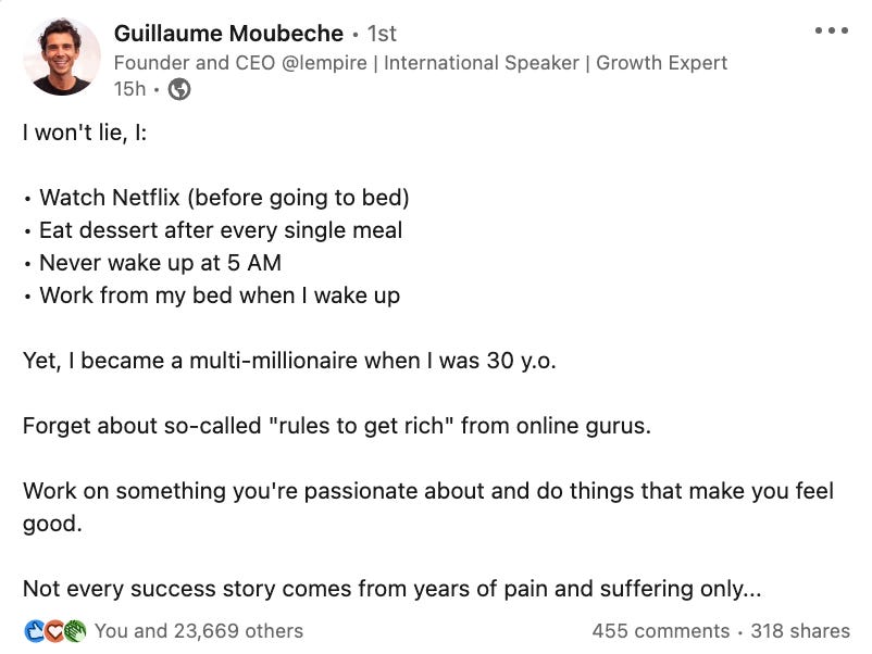 Les posts inspirationnels sont souvent concentrĂ©s sur lâĂ©motion. Câest le genre de posts qui disent âregarde comme jâai galĂ©rĂ© et comme jâai finalement rĂ©ussiâ.
