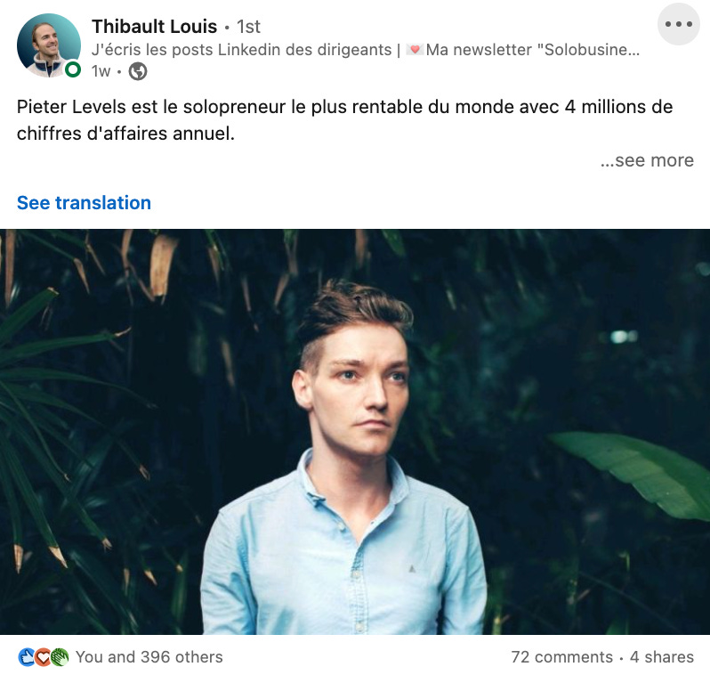 Par exemple, Thibault Louis fait souvent réfléchir sur le modÚle du solopreneuriat avec des posts informatifs :