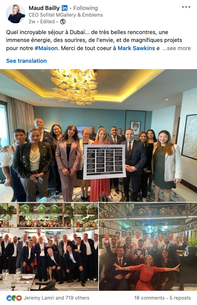 La raison ? Parce que c’est Maud Bailly - CEO de Sofitel - 138k followers.