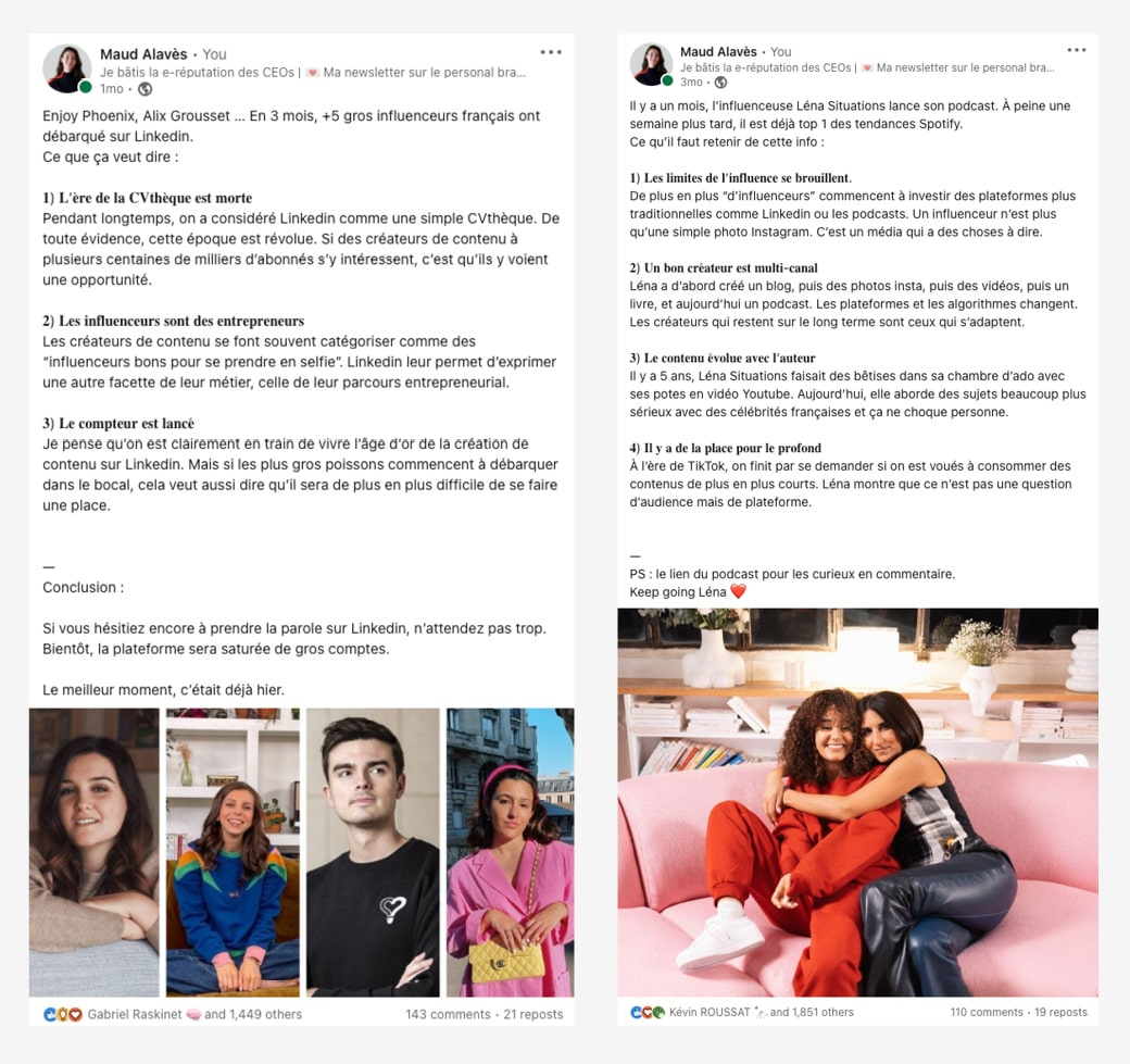 “Enjoy Phoenix, Alix Grousset … En 3 mois, +5 gros influenceurs français ont débarqué sur Linkedin.”