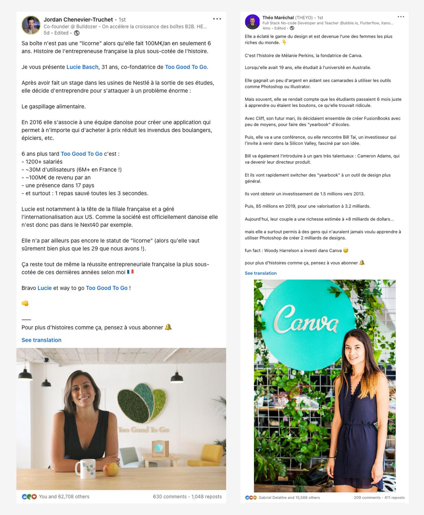 C’est le cas du post sur Canva par exemple. Tout le monde connaît Canva, mais personne ne connaît la fondatrice.
