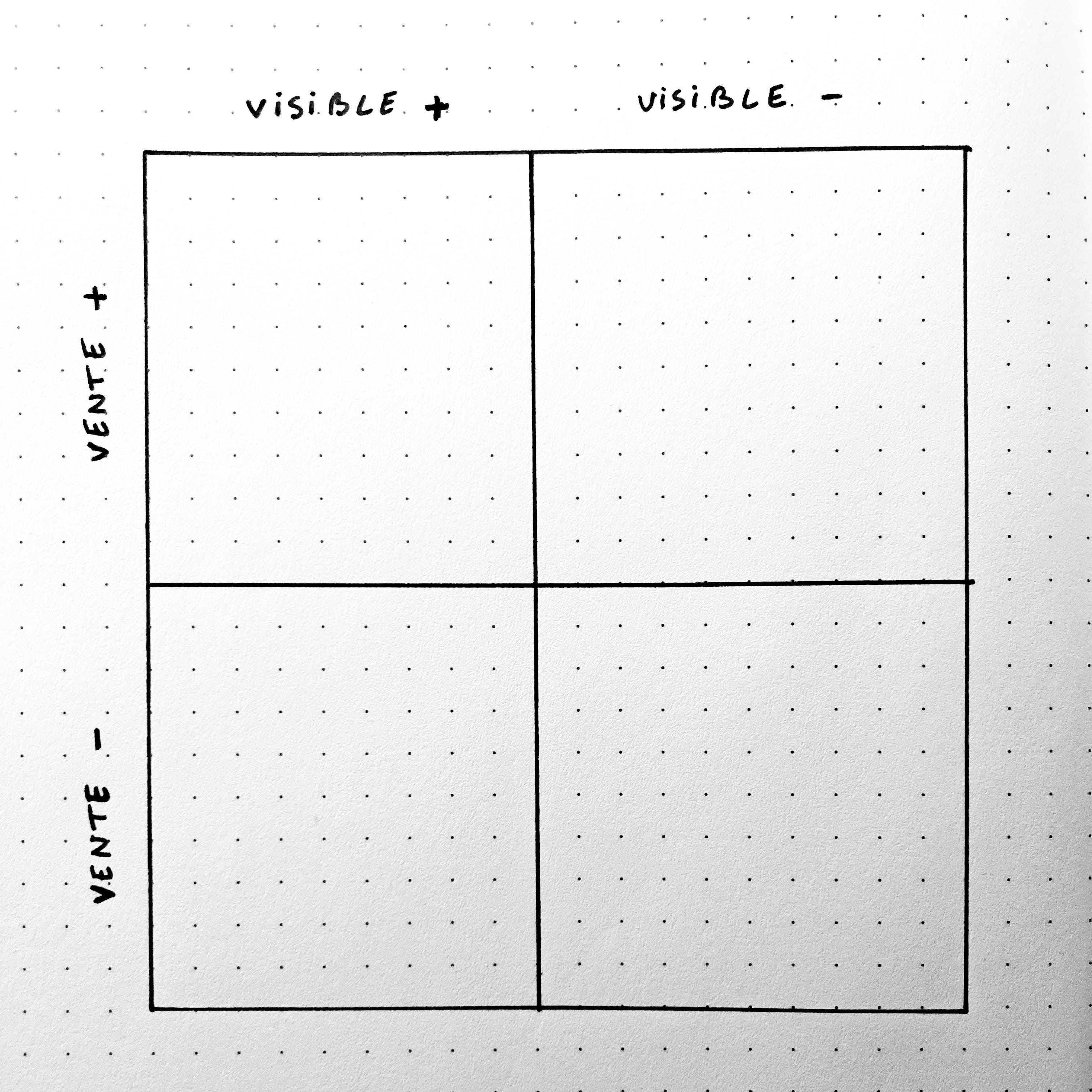 Les “pires” : pas de visibilité, pas de retombées.2/ Placez vos 30 contenus dans la matrice visibilité / ventes