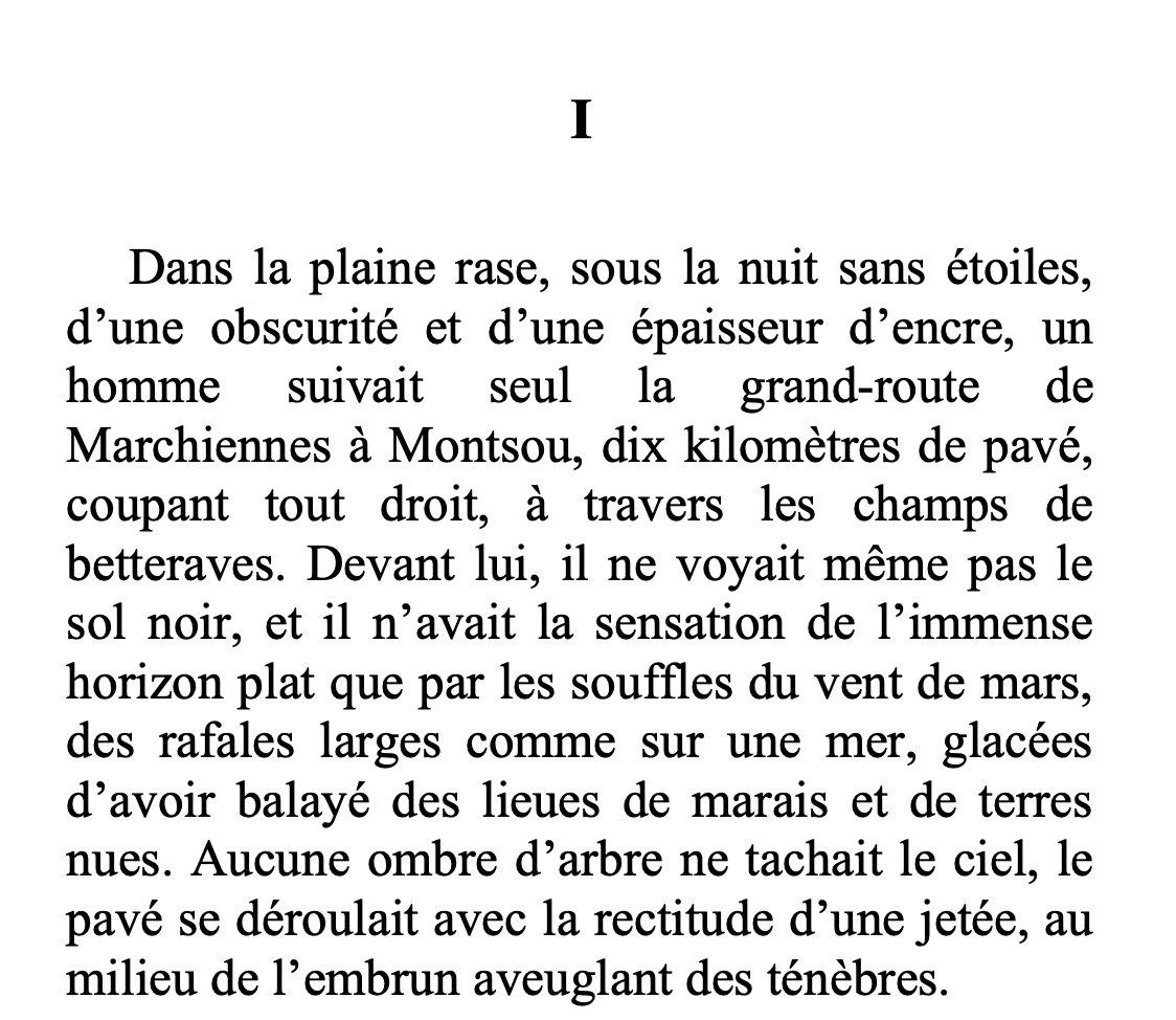 En 1890 (5 ans après la publication), Zola aurait vendu 85,000 exemplaires de Germinal2, et il était considéré comme l’auteur le plus influent de son époque. Alors, si vous n’avez pas lu Germinal à l’école ou que les souvenirs sont trop lointains, voici un extrait de la première page :
