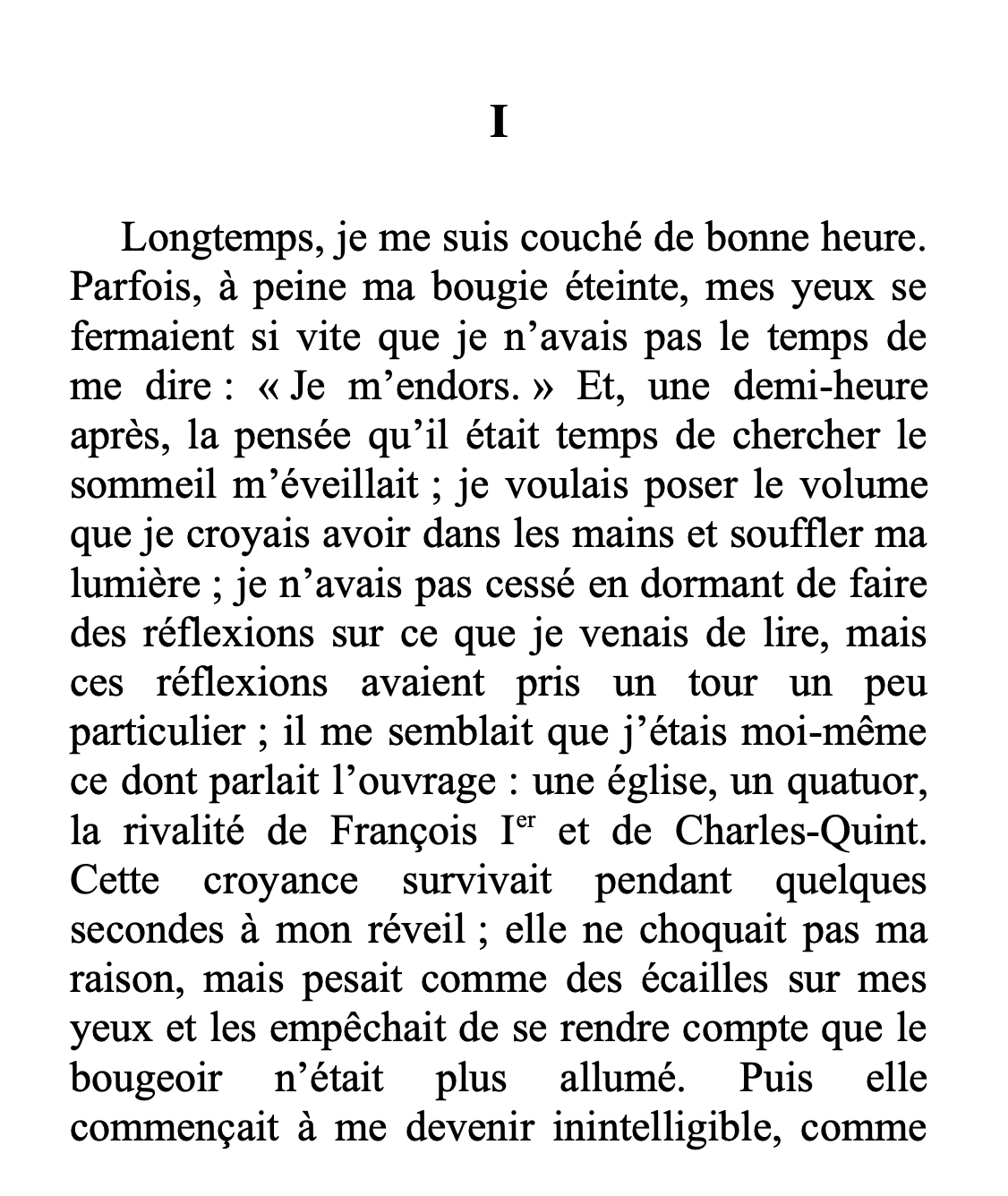 À titre de comparaison, voici la première page de “Du côté de chez Swann” de Marcel Proust :