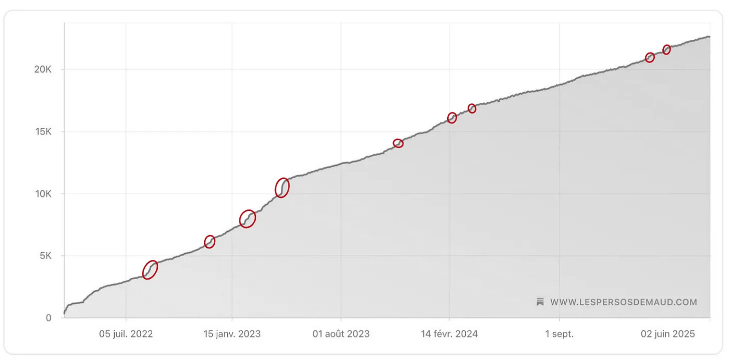 Ensuite, les sujets liés à la croissance. Que ce soit la croissance d’une newsletter, d’une audience ou d’une marque personnelle. Ce sont des questions très pragmatiques, auxquelles beaucoup cherchent des réponses simples. Et paradoxalement, ce sont souvent les textes qui rappellent qu’il n’y a pas de raccourcis.
